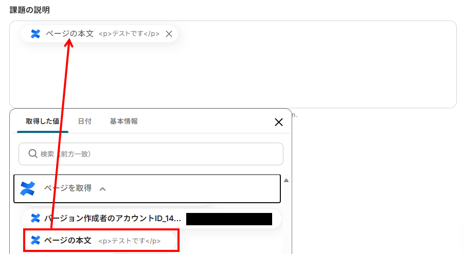 取得した値=アウトプットを用いて以下のように設定することで、Confluenceでページが作成されるごとに、そのページIDを動的に取得できます。