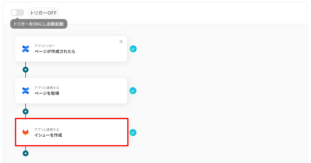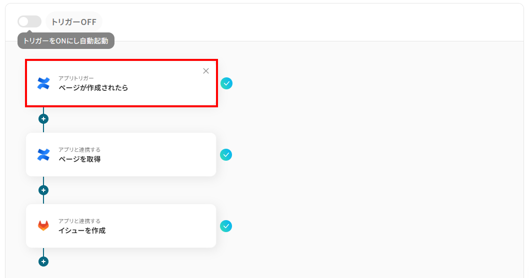 今回は「Confluenceでページが作成されたら、GitLabでイシューを作成する」フローを作成していきます!作成の流れは大きく分けて以下の通りです。