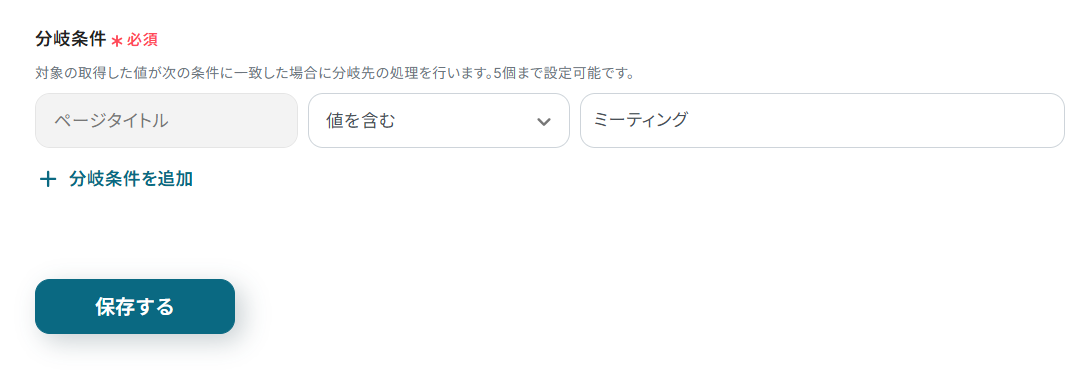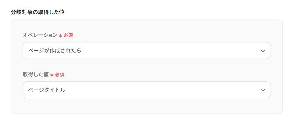 ここでは、トリガーアクションで取得したページのタイトルを分岐対象としています。