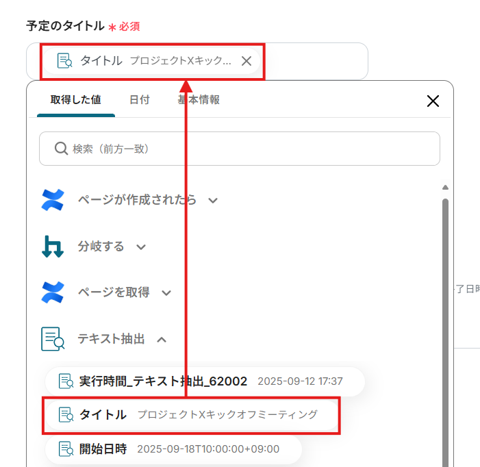 Googleカレンダーに「定例会議」や「プロジェクト進捗会」など、特定のキーワードを含む予定が作成された場合にのみ、Confluenceに議事録ページを作成することもできます。