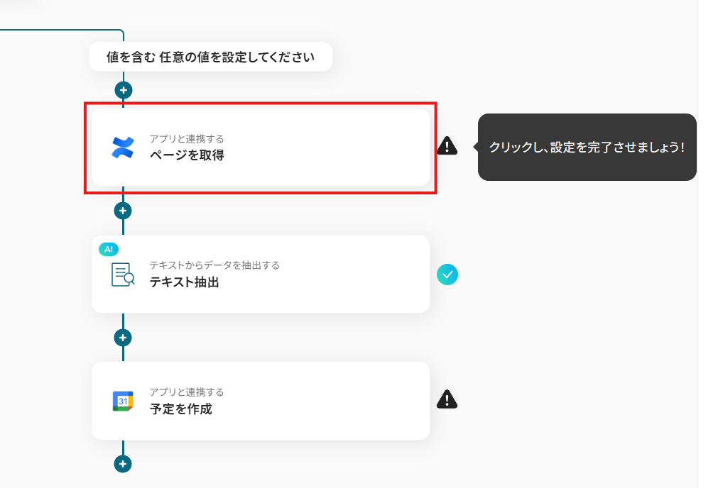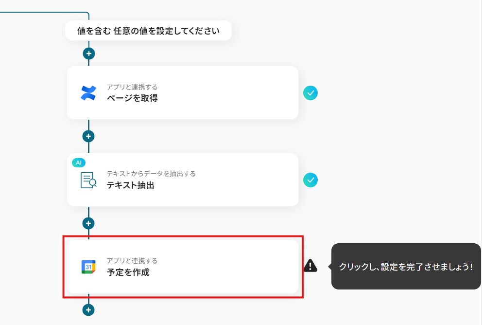 このワークフローを活用すれば、Confluenceで特定のページが作成されると、AIが内容を自動で要約し、Googleカレンダーへ予定として登録するため、情報連携を効率化できます。