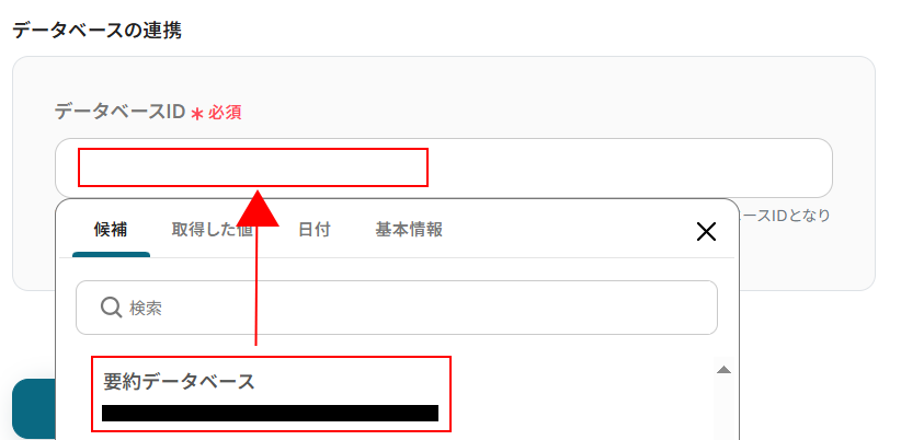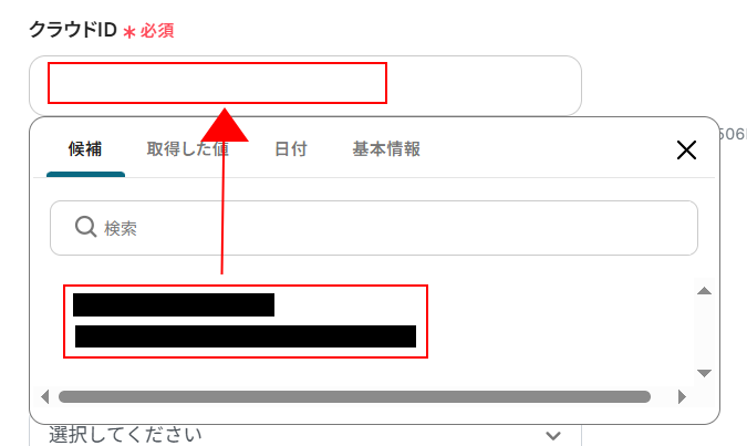 入力欄をクリックし、ステップ1で作成したものを選択してください。