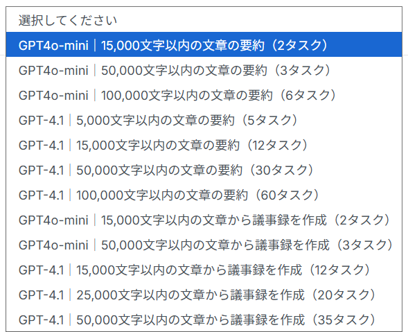 15000文字以上ある文章を要約したい場合、より精度を高めたい場合などは以下からお選びいただけます。