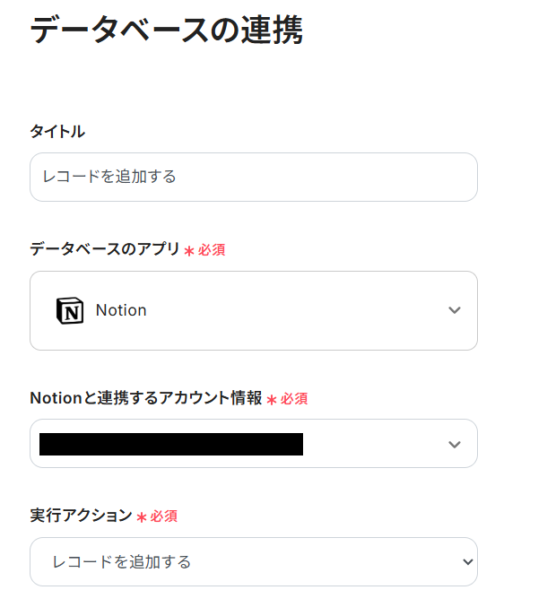 Notionと連携するアカウント情報には、ステップ1で連携したアカウントが表示されています。