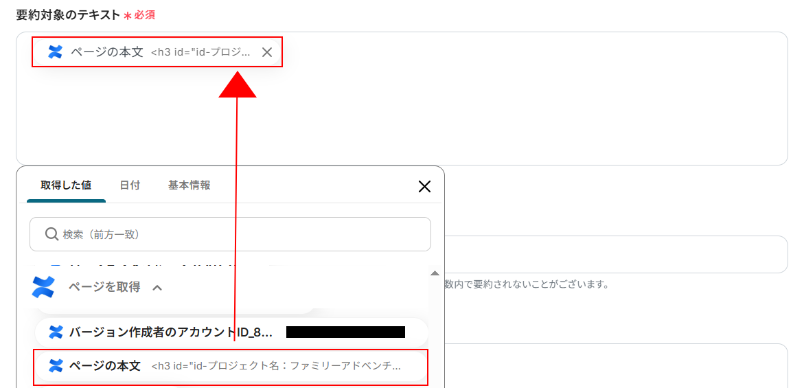 以下のように設定することで、Confluenceでページが作成されるごとに、異なるページ本文を動的に引用し要約することができます。