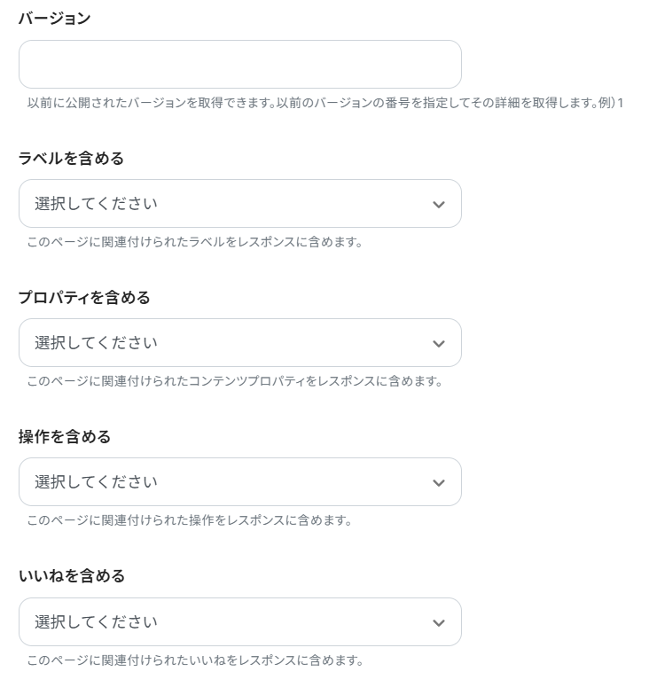 ラベルを含める、プロパティを含める、操作を含める、いいねを含めるはプルダウンメニューから選択してください。