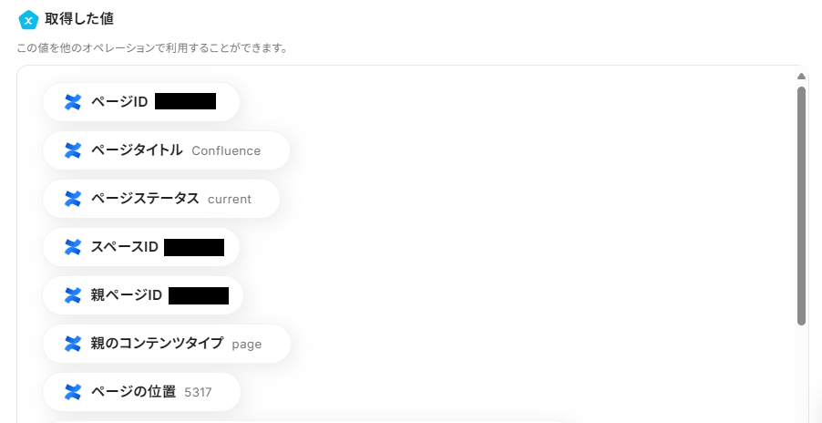 先ほど取得した値にはページ情報が含まれていないため、このステップではConfluenceのページ情報を取得する設定を行います。