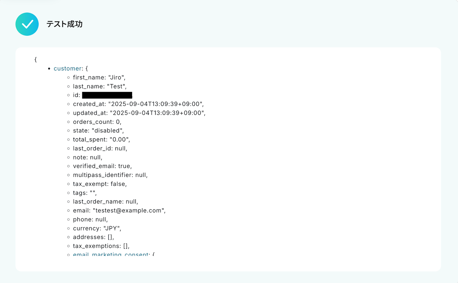 - Shopifyでの顧客情報作成をトリガーに自動でデータが同期されるため、これまで手作業で行っていた入力の時間を短縮することができます。