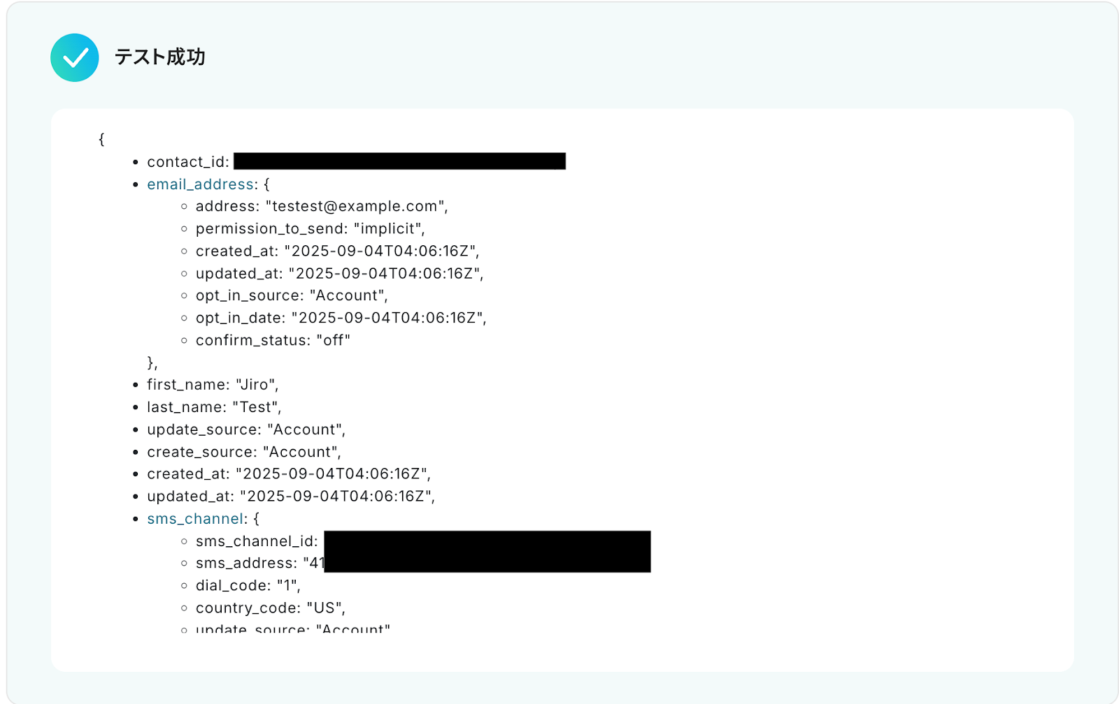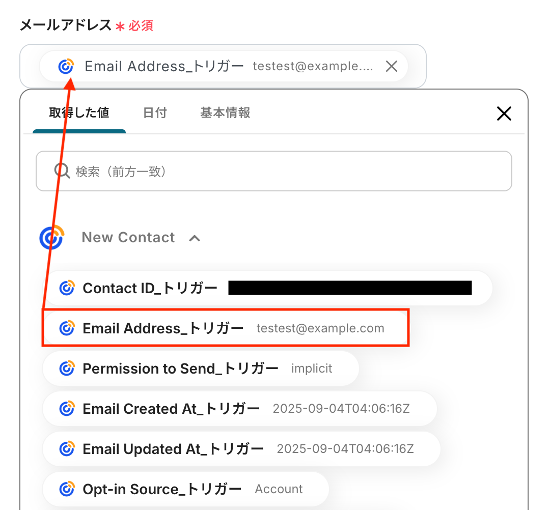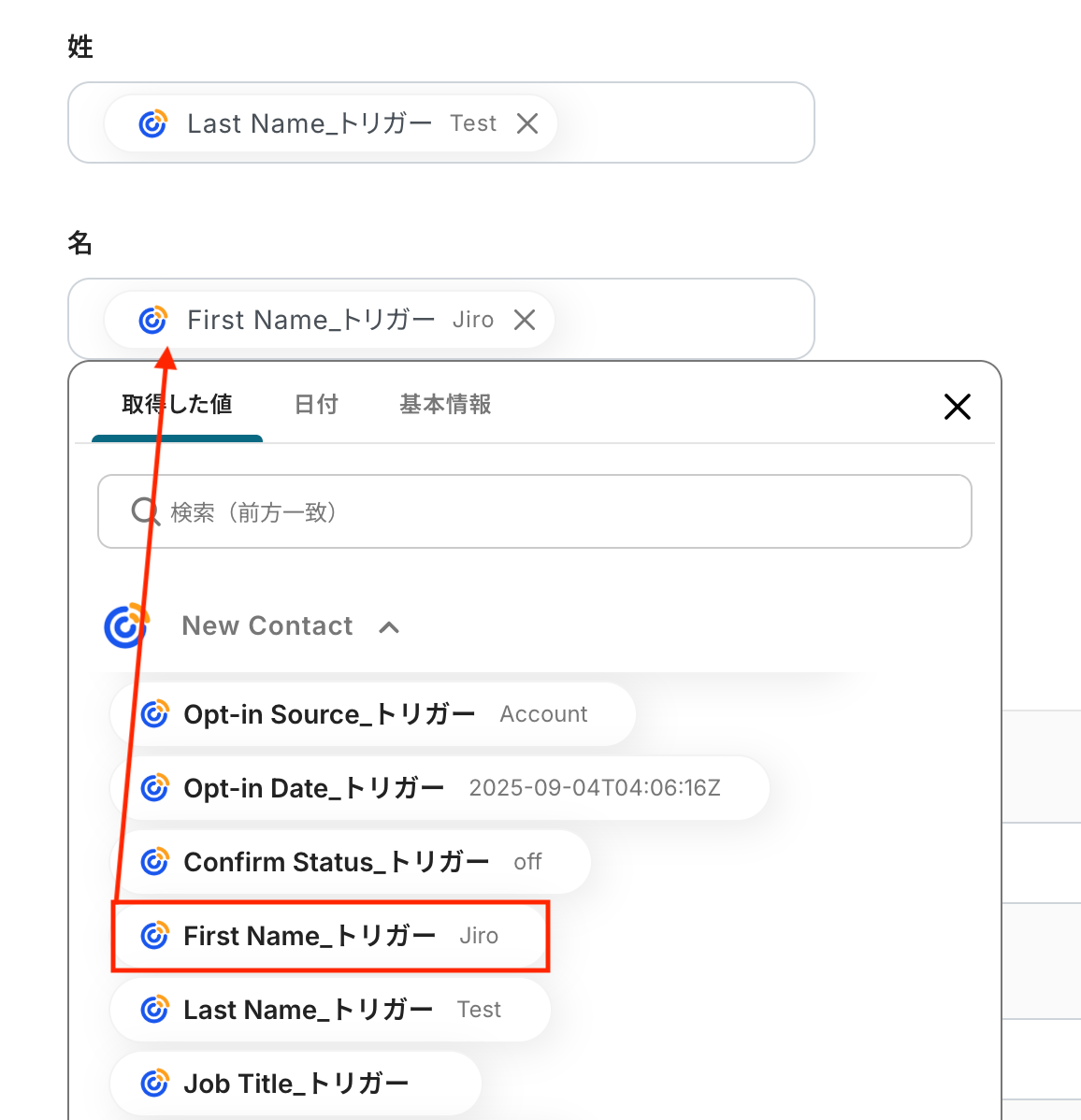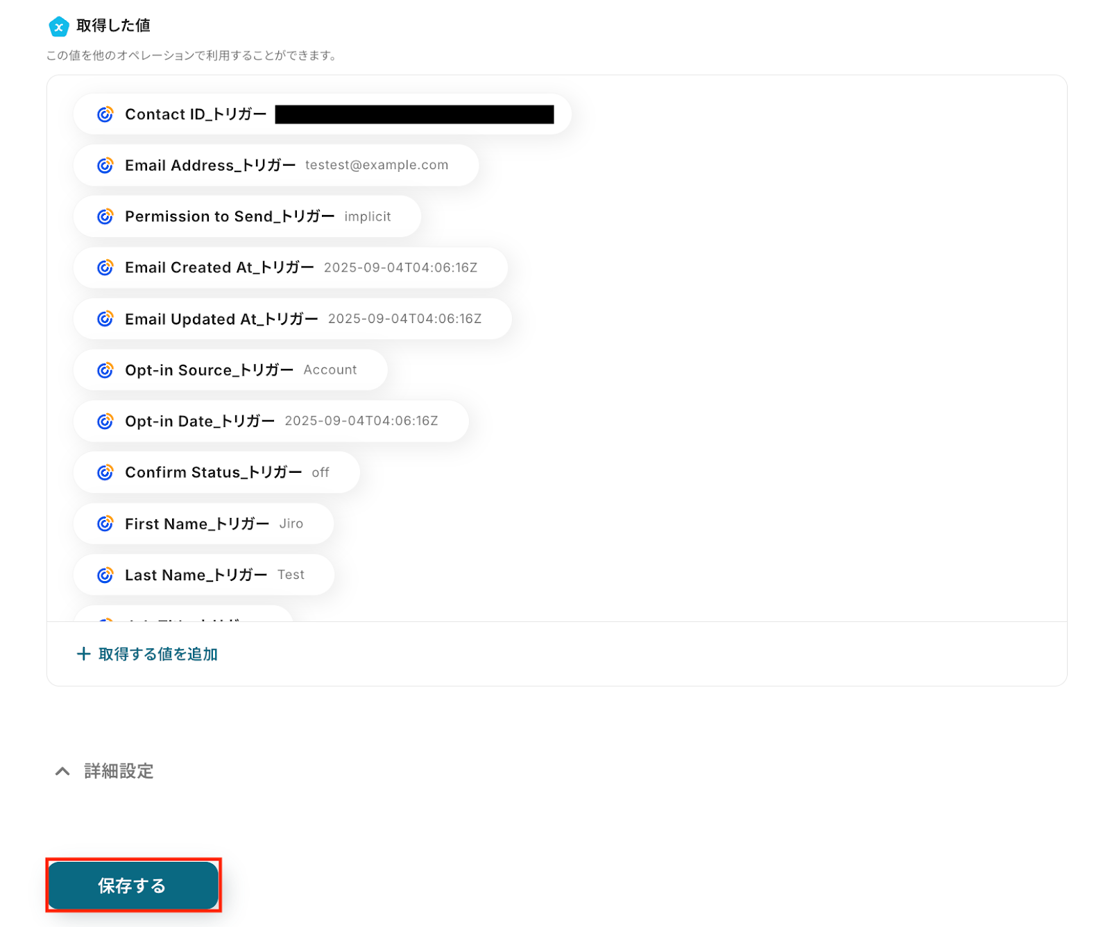 この作成したContactがトリガーイベントとなり、自動化の起点となります。