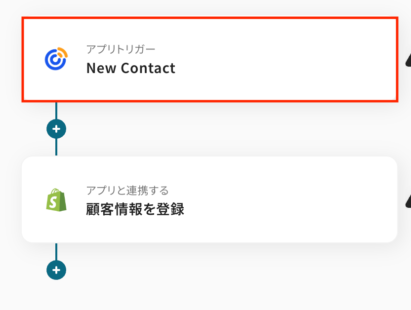 このテンプレートを使えば、新しいコンタクトが作成されたタイミングで、その氏名やメールアドレスなどの情報が自動でShopifyに顧客として登録されるため、手作業でのデータ移行が不要になり、最新かつ正確な顧客情報を維持できます。