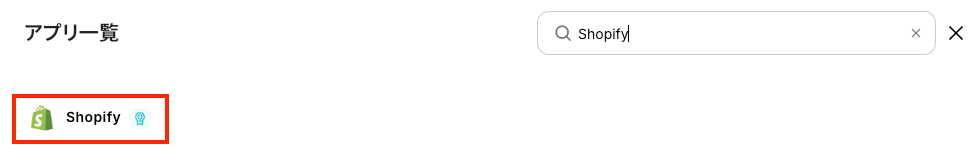 新規接続をクリックしたあと、アプリのメニュー一覧が表示されるのでShopifyと検索し対象アプリをクリックしてください。