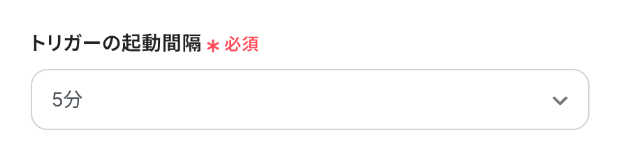 - トリガーは5分、10分、15分、30分、60分の間隔で起動間隔を選択できます。