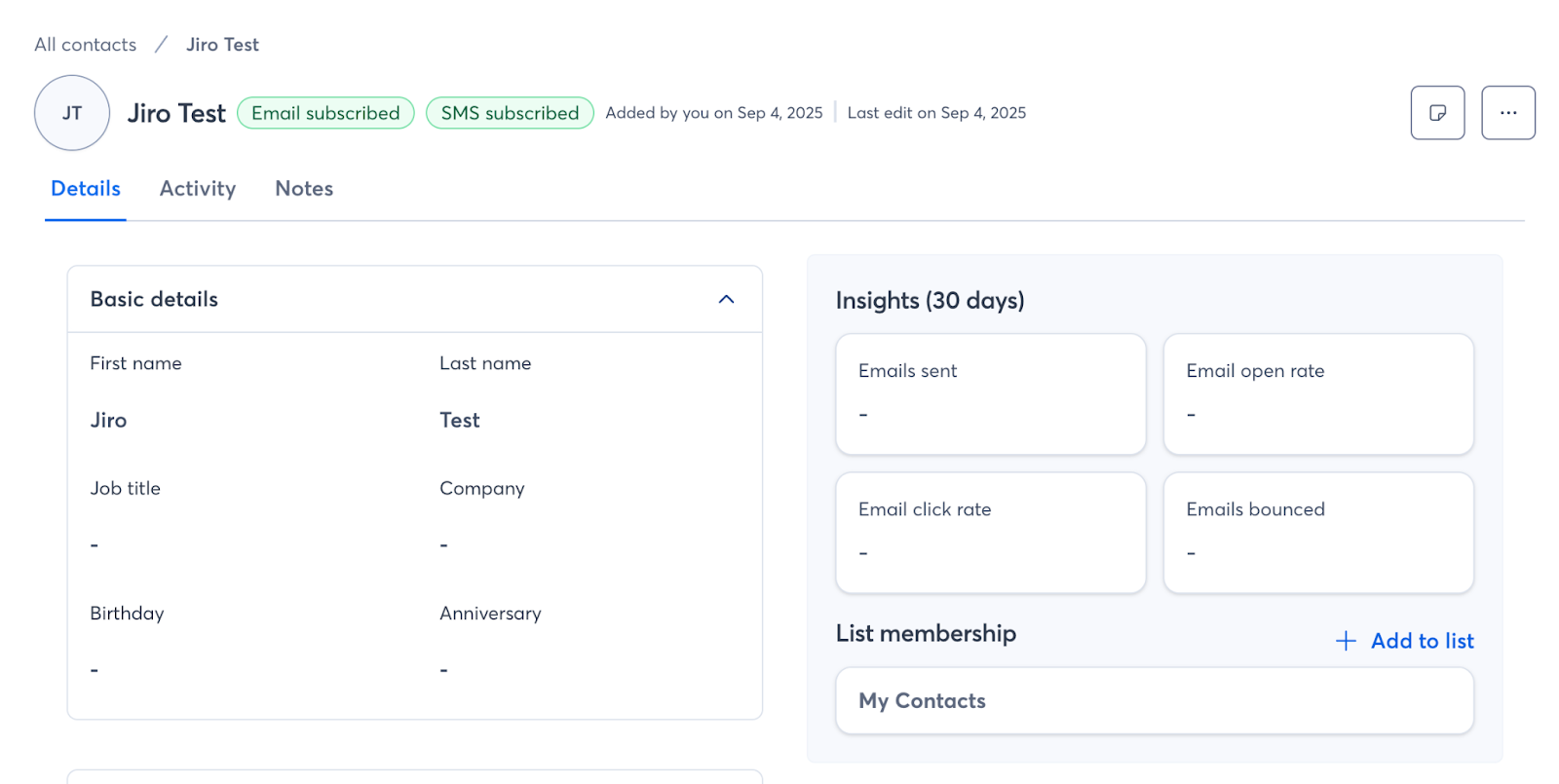 事前準備としてConstant Contactで新しいContactを作成しておきましょう。
