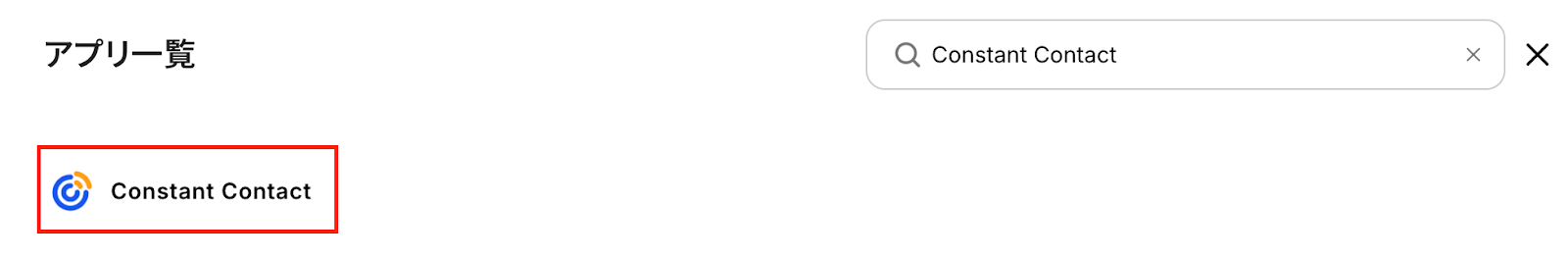 新規接続をクリックしたあと、アプリのメニュー一覧が表示されるのでConstant Contactと検索し対象アプリをクリックしてください。
