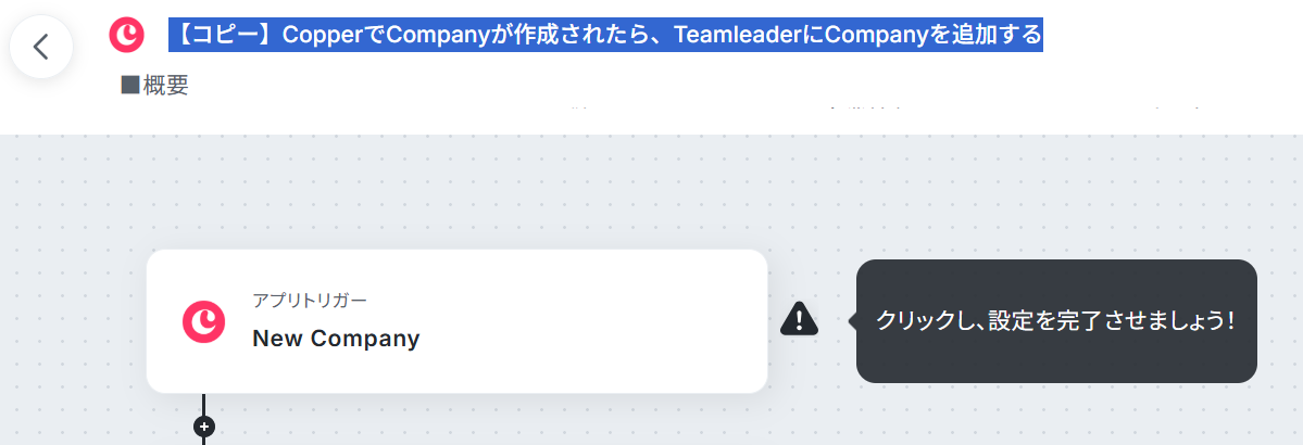フローの作成方法 今回は、「CopperでCompanyが作成されたら、TeamleaderにCompanyを追加する」 フローを作成していきます! 作成の流れは大きく分けて以下です。