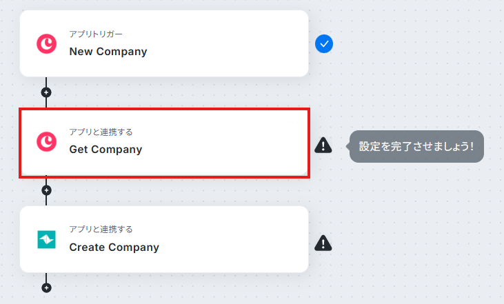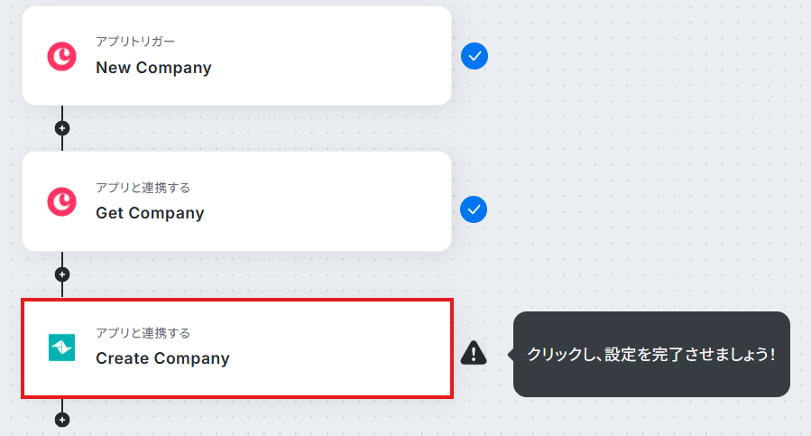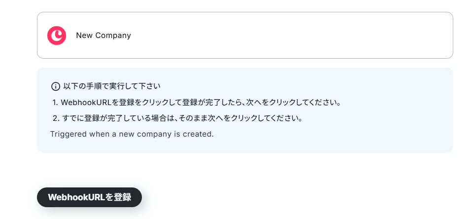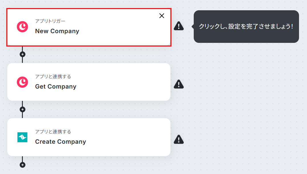 ステップ3:Copperのトリガー設定 まずはCopperでCompanyが作成されたら起動するトリガーアクションを設定していきます。