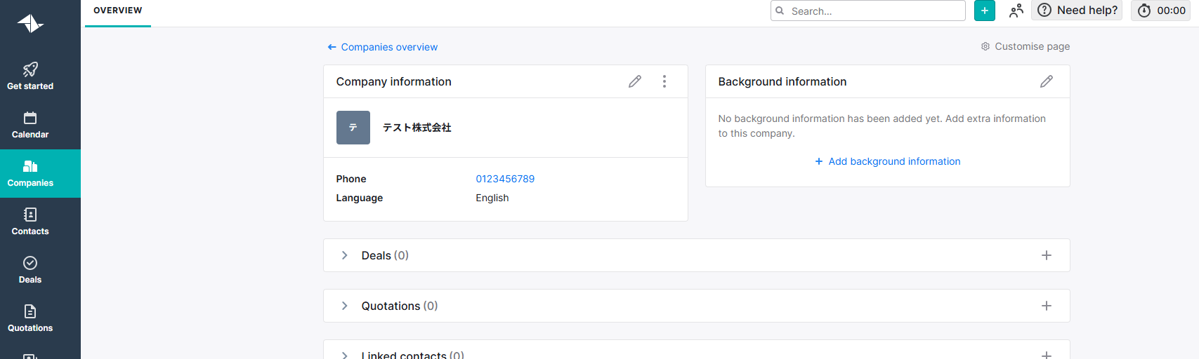 ここで、トリガーとなるアクションを実行します。 今回は、CopperでCompanyが作成されたら起動するため、実際以下のようにCopperでCompanyを作成しました。