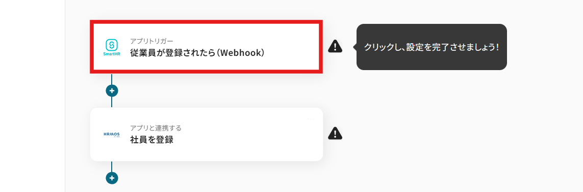 まず、一番上の「従業員が登録されたら(Webhook)」のアイコンをクリックします。