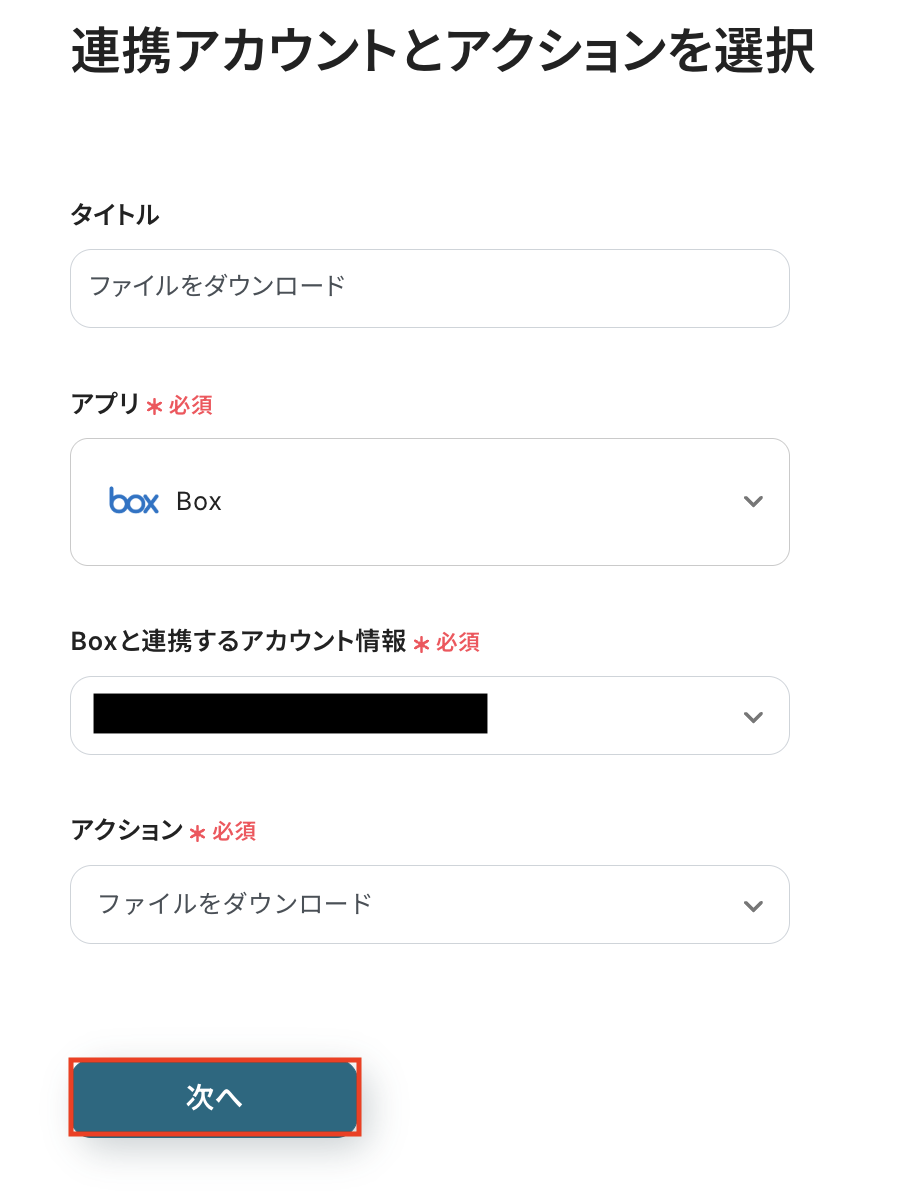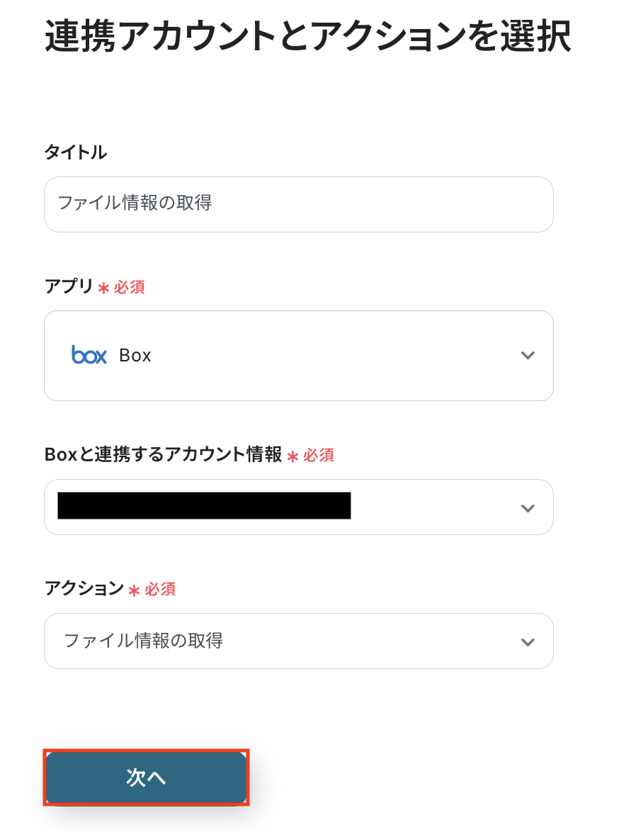 Boxと連携するアカウント情報に問題がなければ、「次へ」をクリックします。