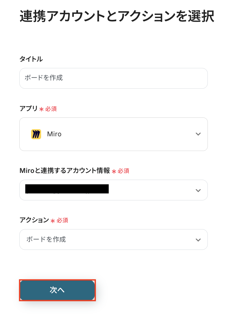 Miroと連携するアカウント情報に問題がなければ、「次へ」をクリックします。