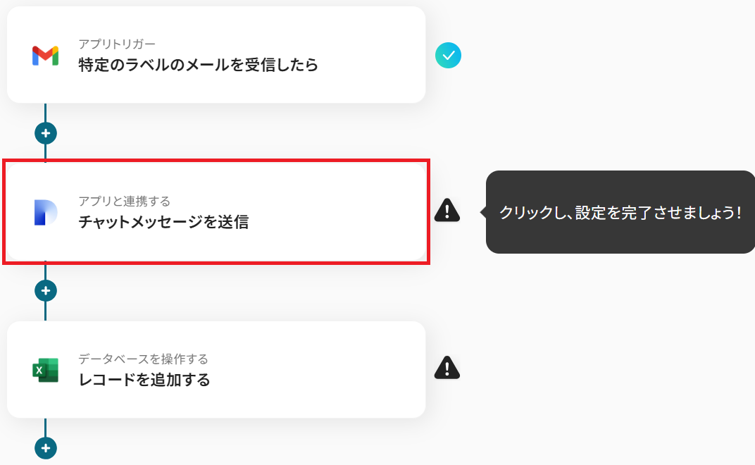 今回ご紹介したテンプレートのGmailのアクションを削除し、使用したいツールを追加してください。