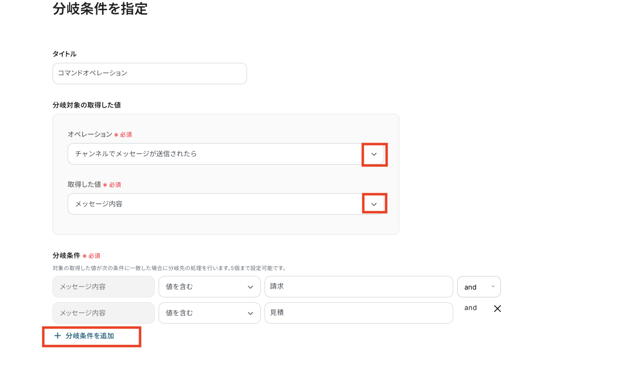 ※「分岐する」オペレーションは、ミニプラン以上でご利用いただけます。フリープランで利用するとエラーになってしまうのでご注意ください。