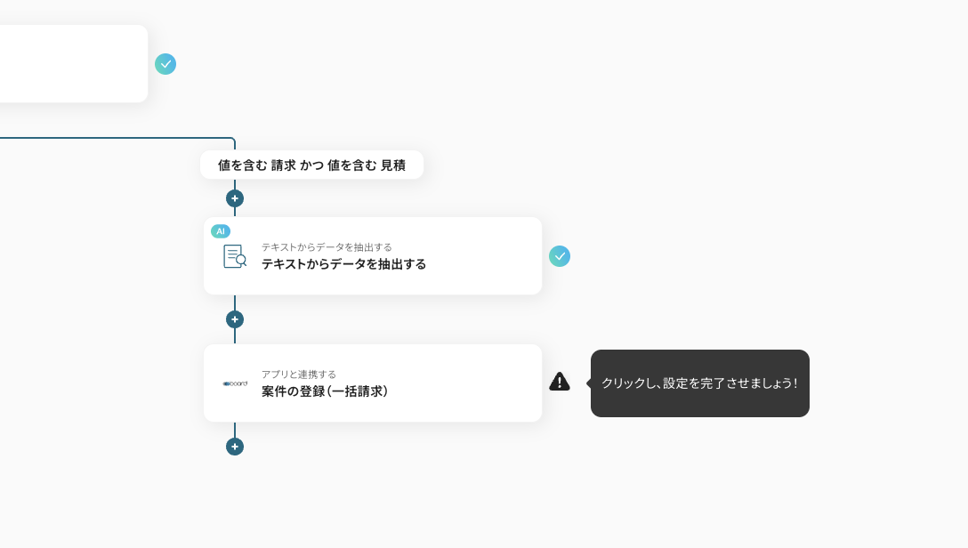 また、特定の条件に基づいて処理を分岐することも可能であるため、手作業による案件登録の手間と時間を削減し、入力ミスも低減するはずです。