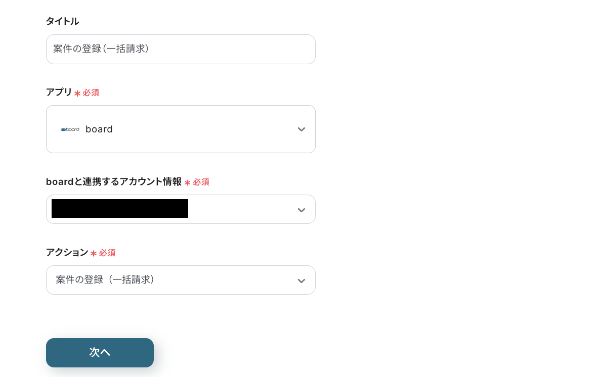 boardで新規案件が登録されたら、Google Driveに連携して案件名のフォルダを作成するフローです。