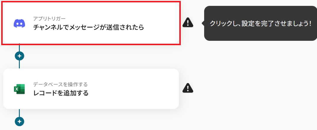 - Discordのトリガー設定、Microsoft Excelのアクション設定