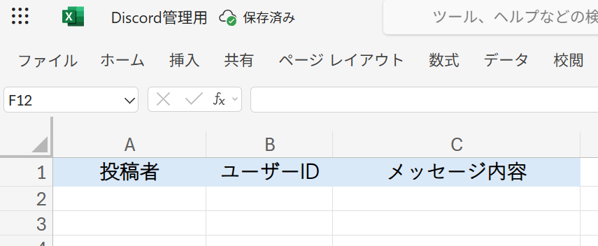 Microsoft Excelの方でも、Discordの管理に使うシートを用意しておきましょう。