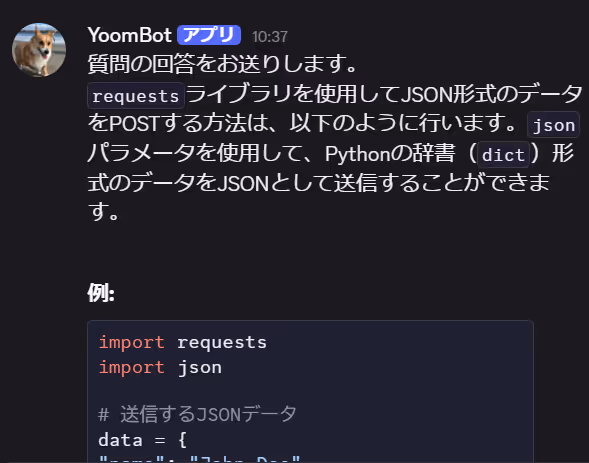 メッセージ内容にも取得した値からOpenAIで生成した回答を選択し入力します。