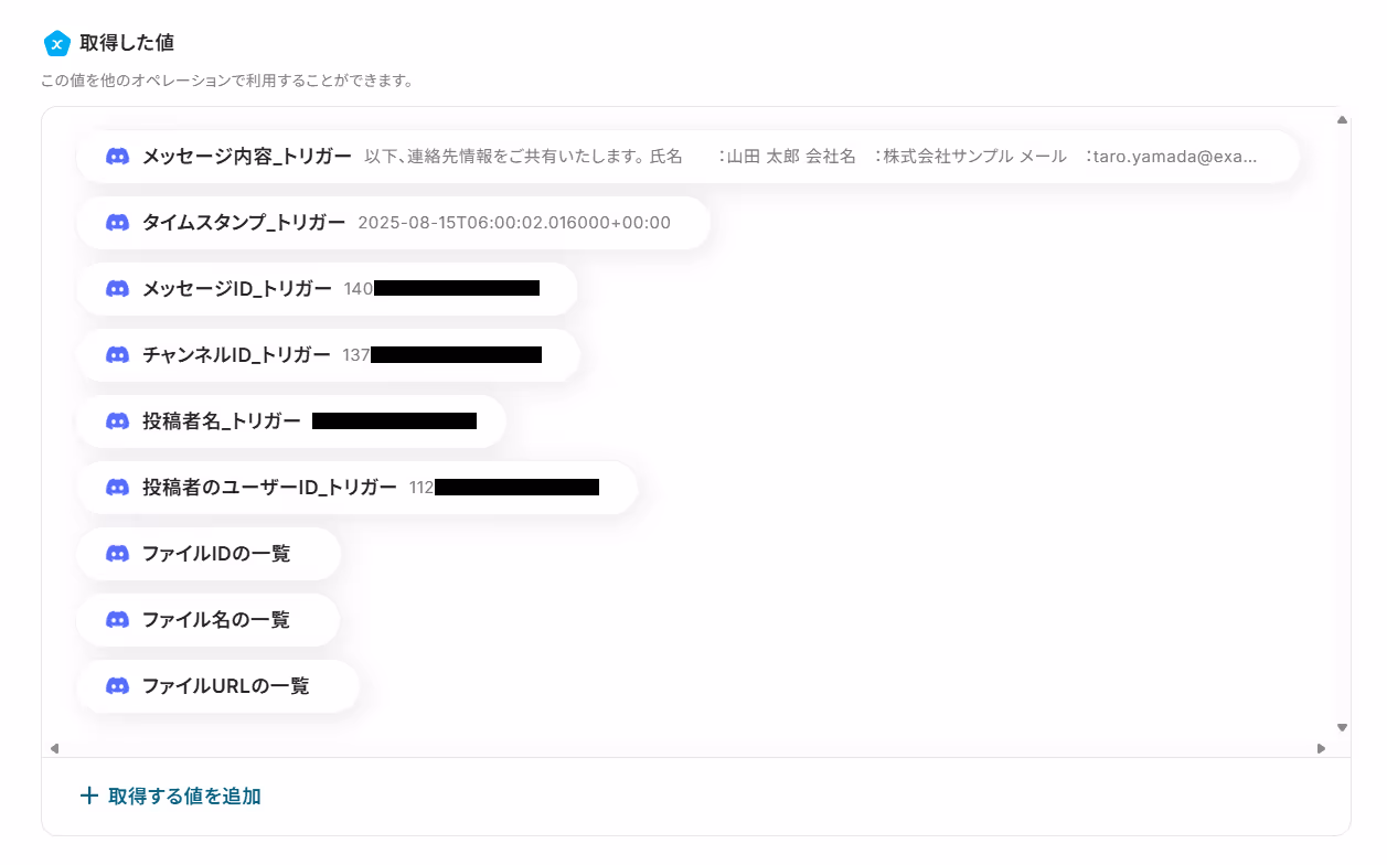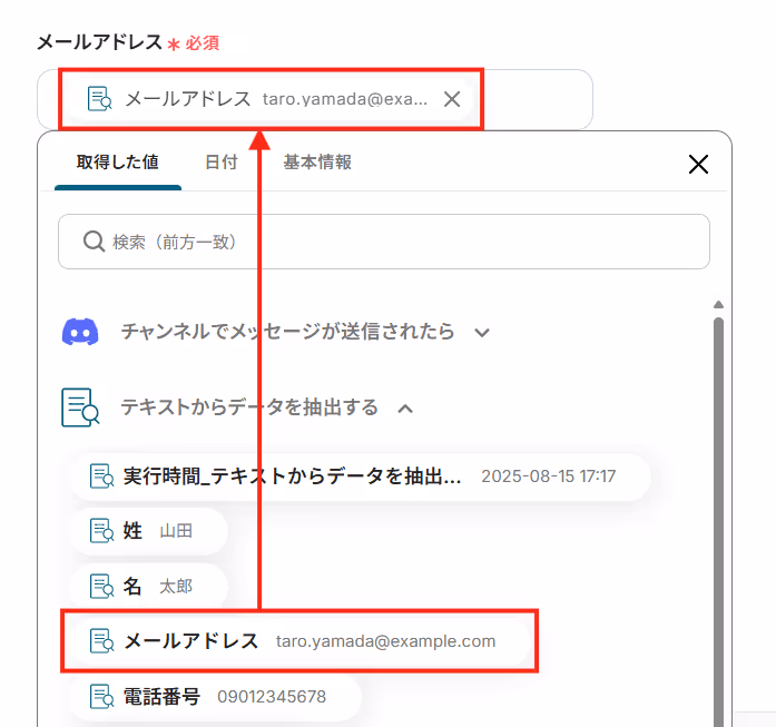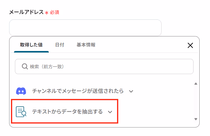 取得したメッセージから、顧客情報の登録に使用するデータを抽出していきます。