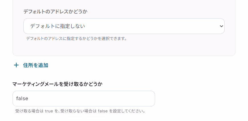 Shopifyの「顧客情報を取得」と「分岐」オペレーションを組み合わせ、重複するメールアドレスが存在するならShopifyの「顧客情報を更新」を行う、といった対応が必要になるでしょう。