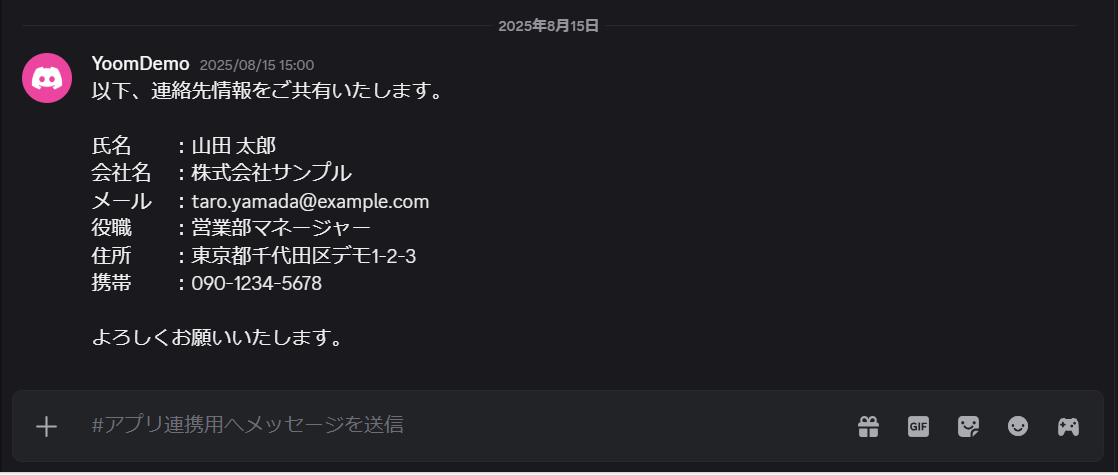 Discordの通知先やメッセージ内容を任意の値に置き換えてご利用ください。