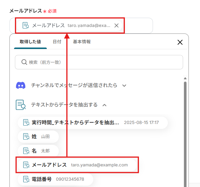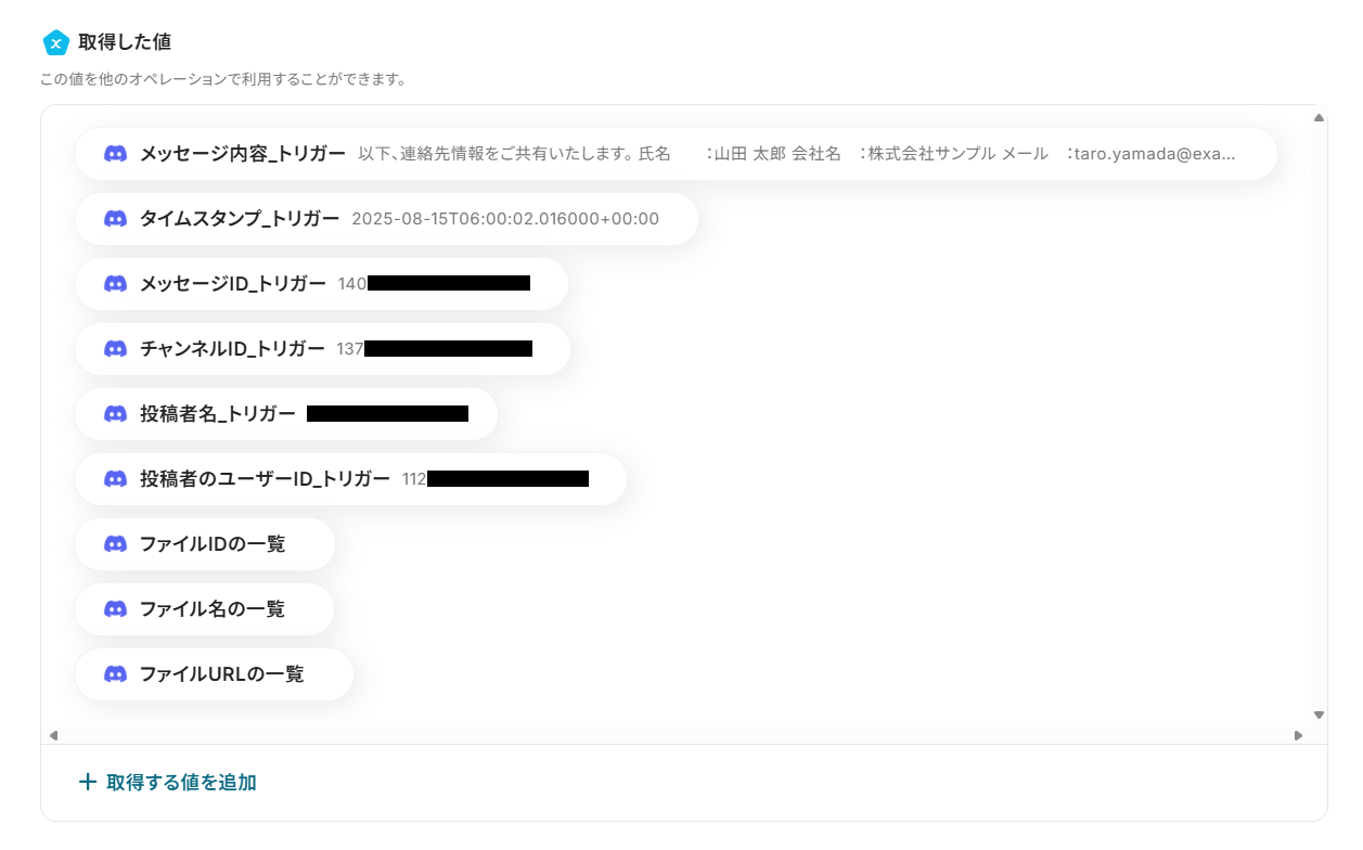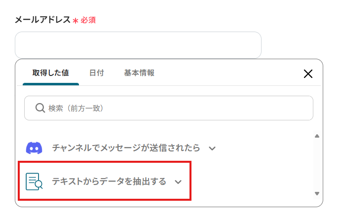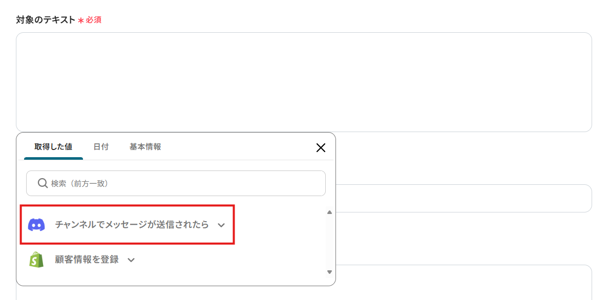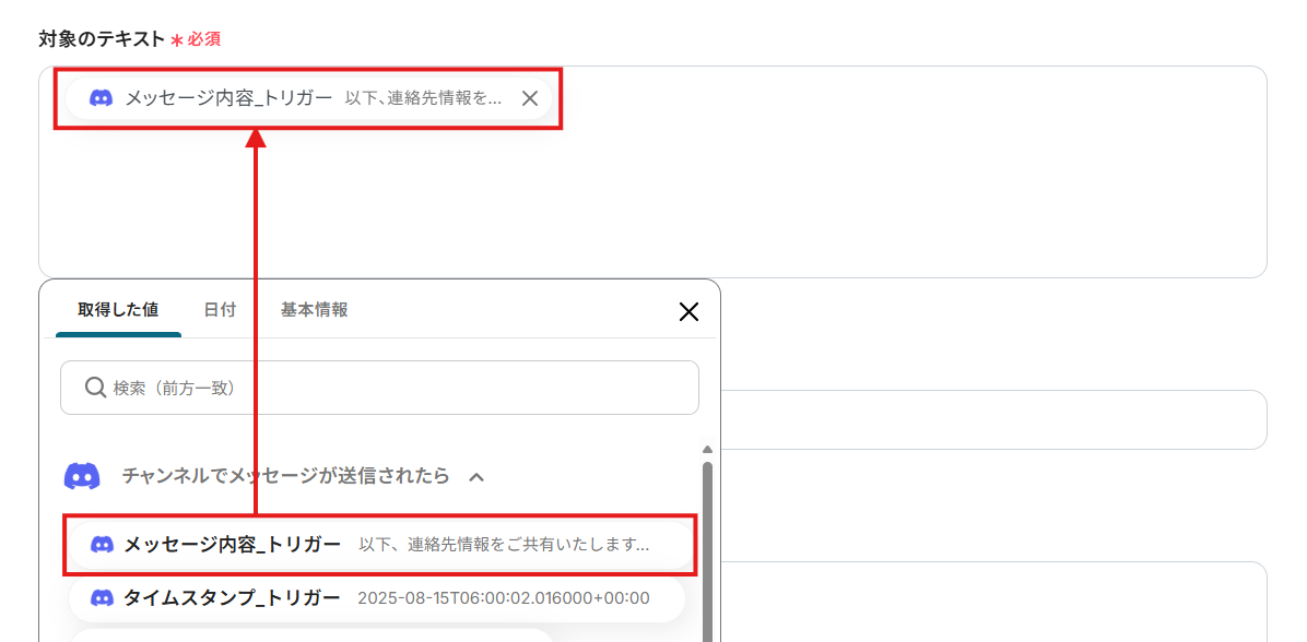 - Discordのトリガー設定と各アクション(データ抽出・顧客情報登録)の設定