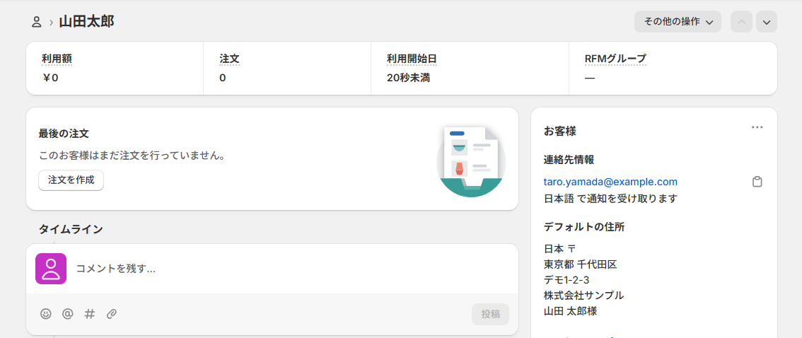 - テストに成功したら、Shopifyの顧客情報を確認しましょう。