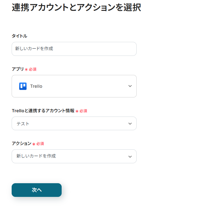 アプリトリガーのAPI接続設定が表示されるので、設定を進めていきましょう。