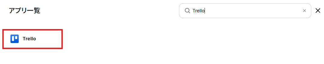 検索窓が表示されるので、Trelloと入力し候補に表示されるアイコンをクリックしましょう。