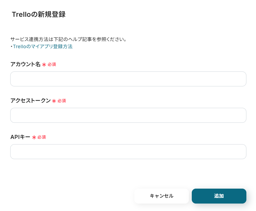 連携のため必須事項を入力し、「追加」をクリックしましょう。