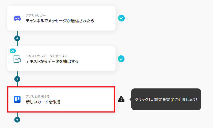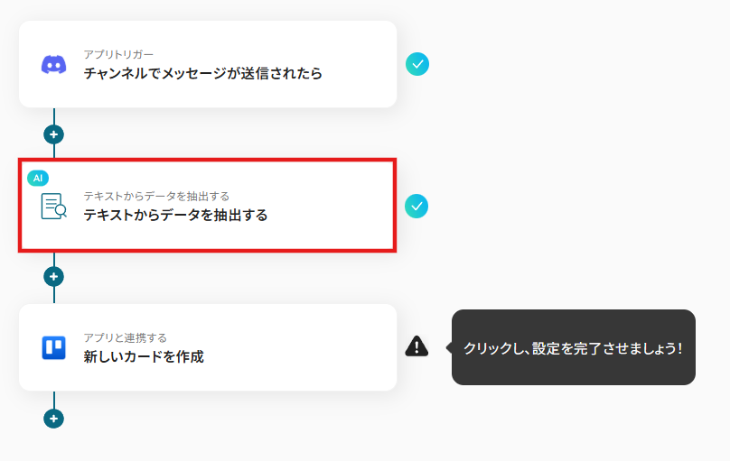 Discordのメッセージ内容からTrelloでカードを作成するため、AIを用いて内容を抽出する設定を行います。