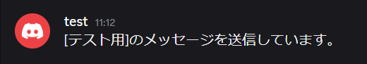 入力できたら、この後のテストで使用するメッセージを、Discordの連携先のチャンネルで送信しておきましょう。