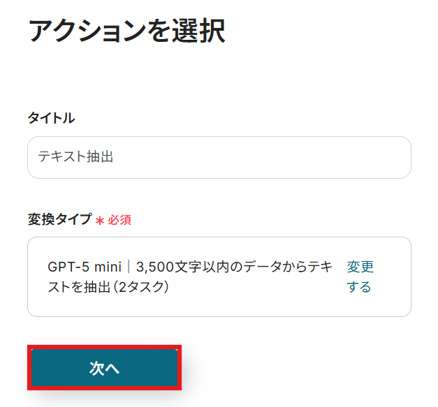 ステップ4:メッセージからテキストを抽出するアクション設定