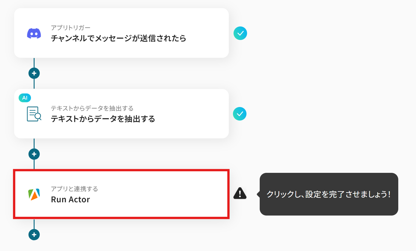 このワークフローを活用すれば、ApifyとDiscordを連携させ、Actorの実行が正常に完了したタイミングで自動的にDiscordへ通知を送信できます。ApifyとDiscordの連携を通じて、手動での確認作業をなくし、迅速な情報共有を実現します。