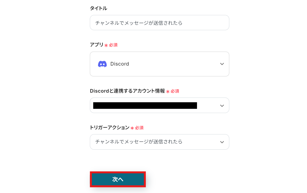 Discordと連携するアカウント情報はプルダウンから選択します。