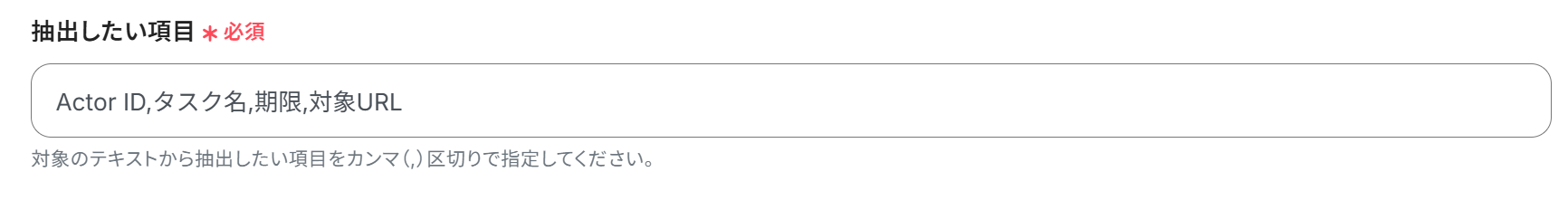 Actor ID:デフォルトでは、抽出したActor IDが設定されています。