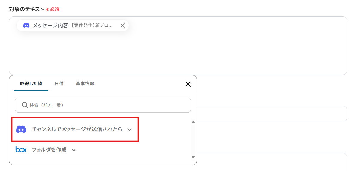「#新規案件」や「#重要」といった特定のキーワードを含むメッセージがDiscordに投稿された場合にのみ、Boxにフォルダを作成することも可能です。