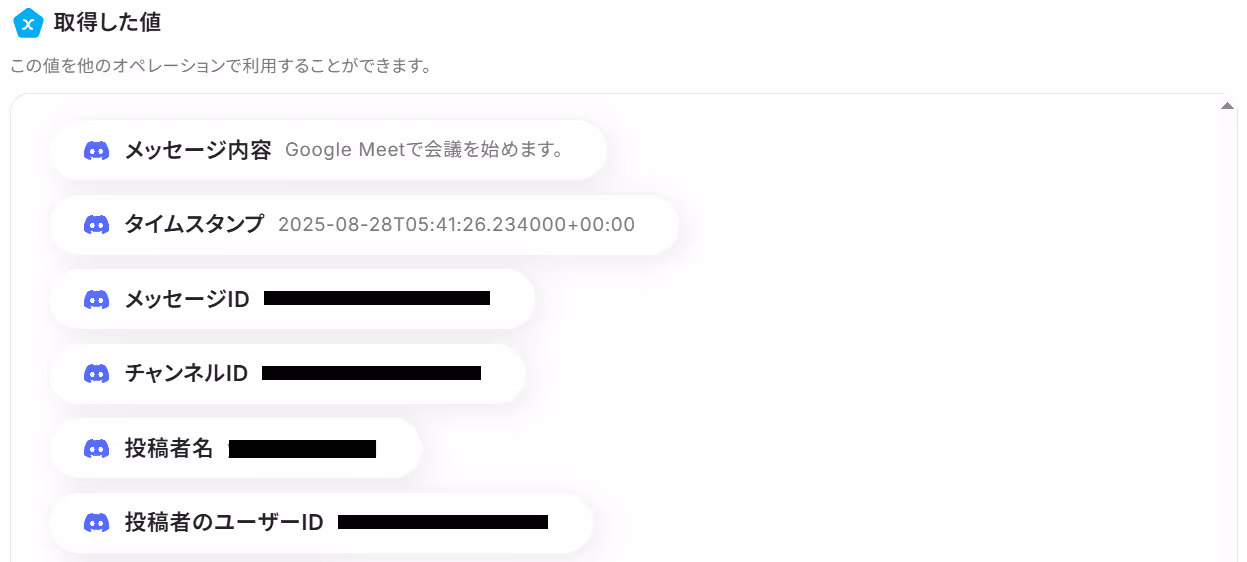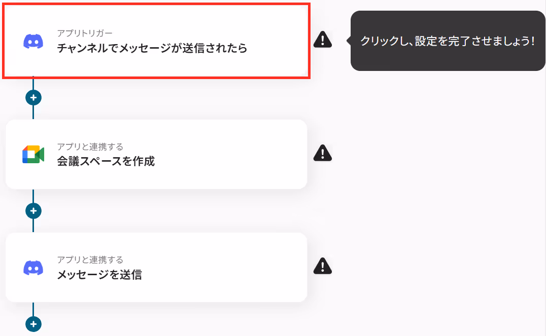 逆にGoogle MeetでのアクションをトリガーにDiscordへ情報を連携する自動化も可能です。