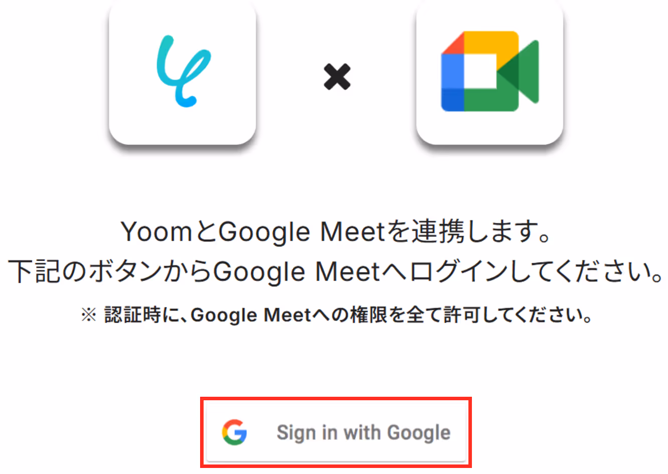 同様にGoogle Meetを検索してください。この画面が表示されるので「Sign in with Google」をクリック。