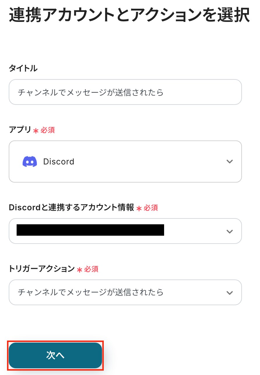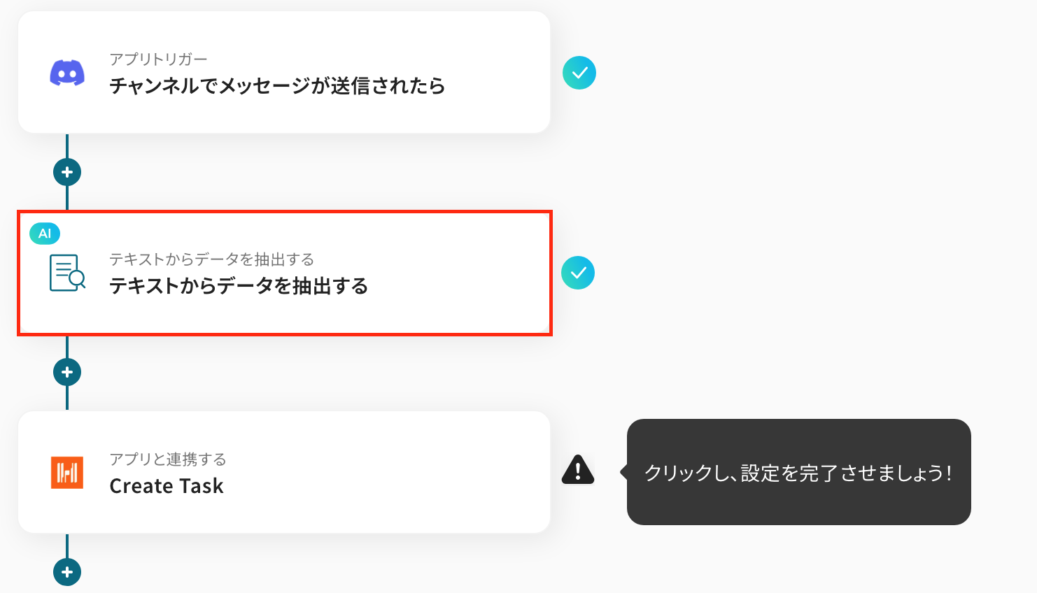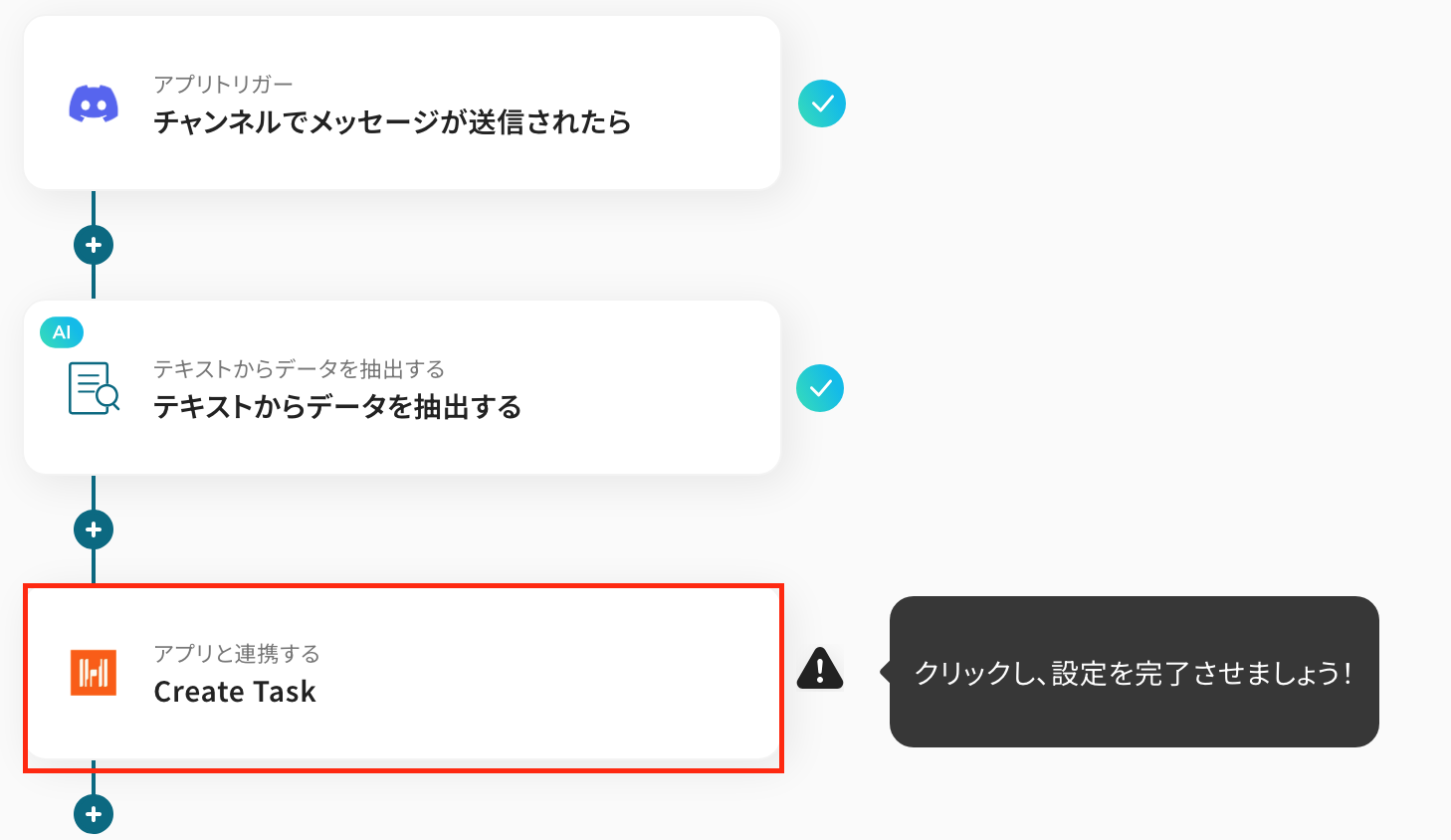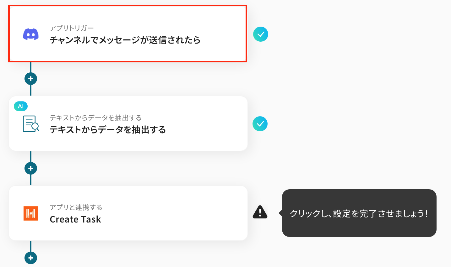最初の設定です。ここから「Discordの投稿内容をもとにHarvestにTaskを作成する」フローを設定していきます。