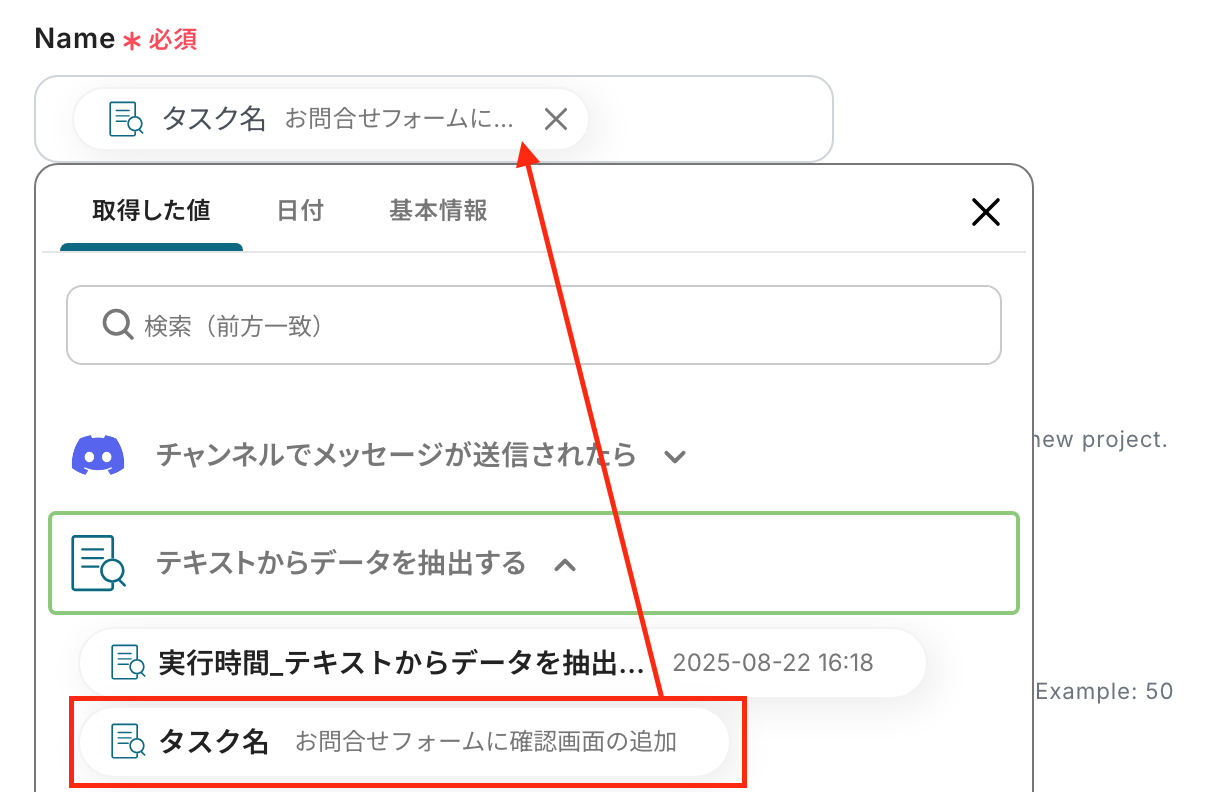 Discordの投稿内容に含まれる名前や日付を抽出し、Harvestの担当者や期限に自動で反映させることができます。